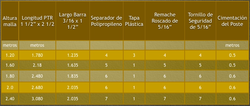 Resistencia a la tensión del alambre: 75,000 – 105,000 Lb/in2.